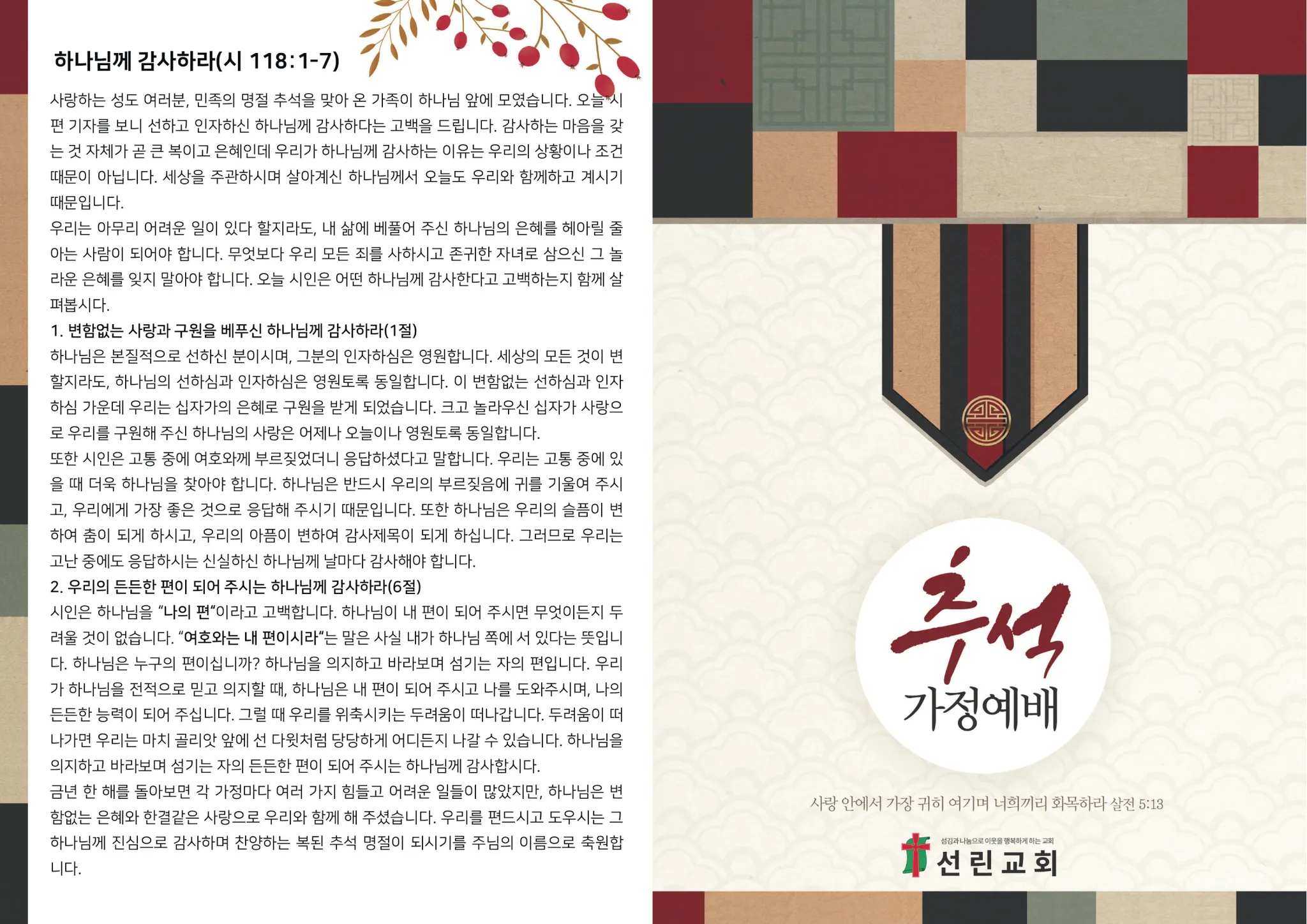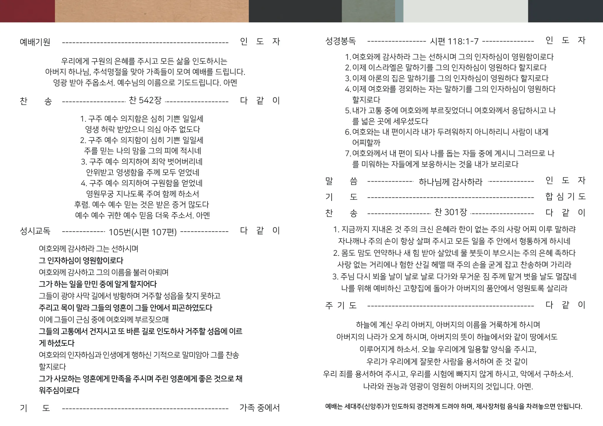 추석 명절 가정예배순서지(2025)